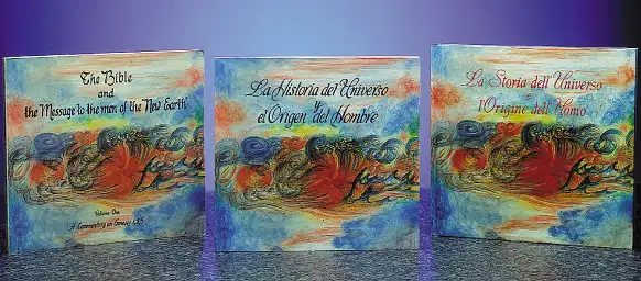 Prospetto introduttivo del “Messaggio agli uomini della Nuova Terra”, stampato in quattro lingue in occasione di una Esposizione dei disegni e dei libri della serie “Nuova Terra”, negli anni 1979-81, presso il “Christian Information Centre” gestito dai Francescani in Gerusalemme.